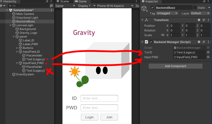 사용자 계정은 Input field 하위의 Text 오브젝트를 가져와서 그 text property를 조회하니 잘 되었는데,