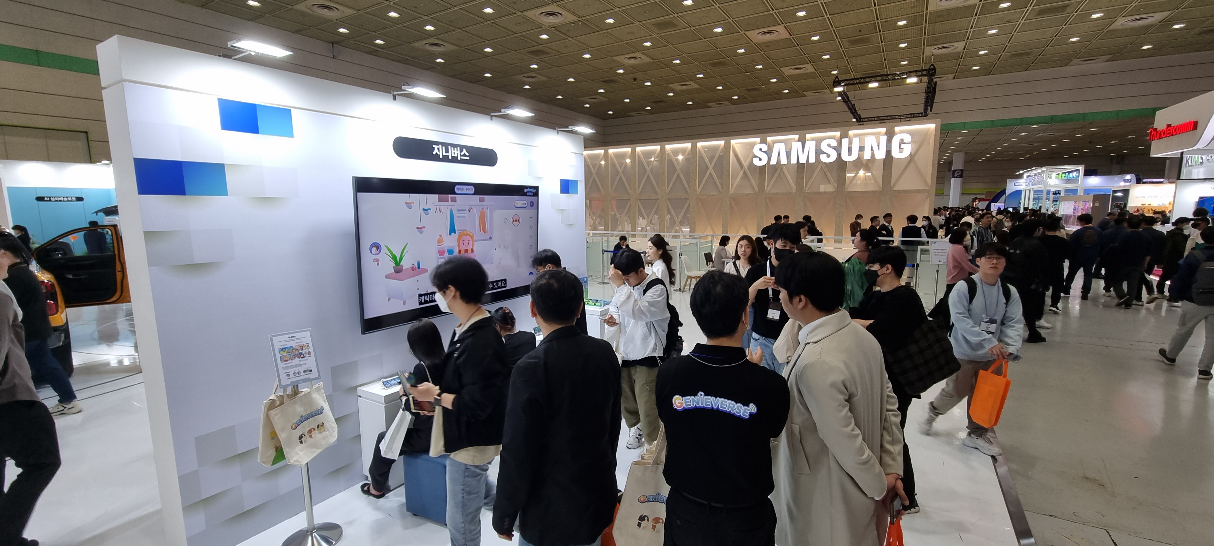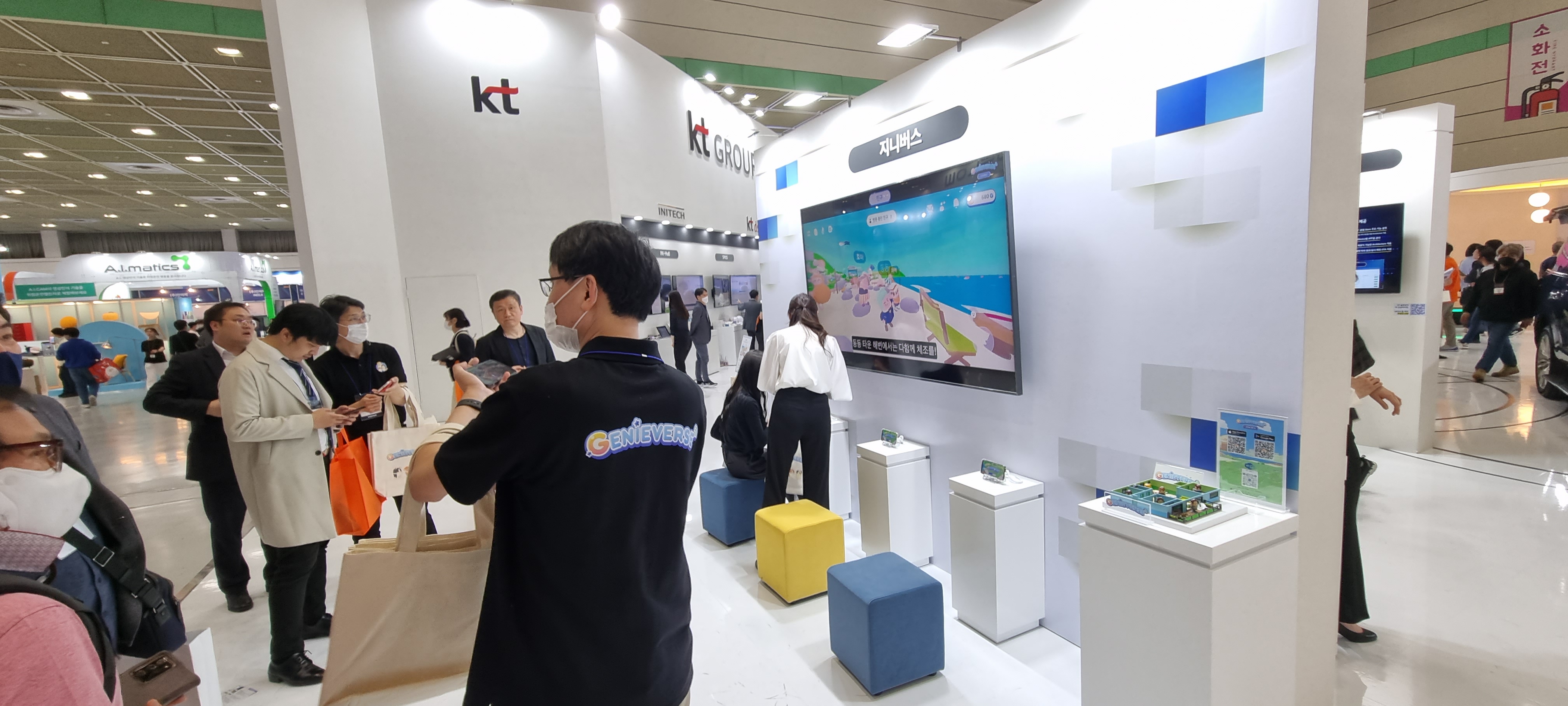KT 부스 전면에 '지니버스'가 있었습니다. 오가는 사람들은 '지니버스'가 무엇인지 잘 모르는 것 같았습니다.