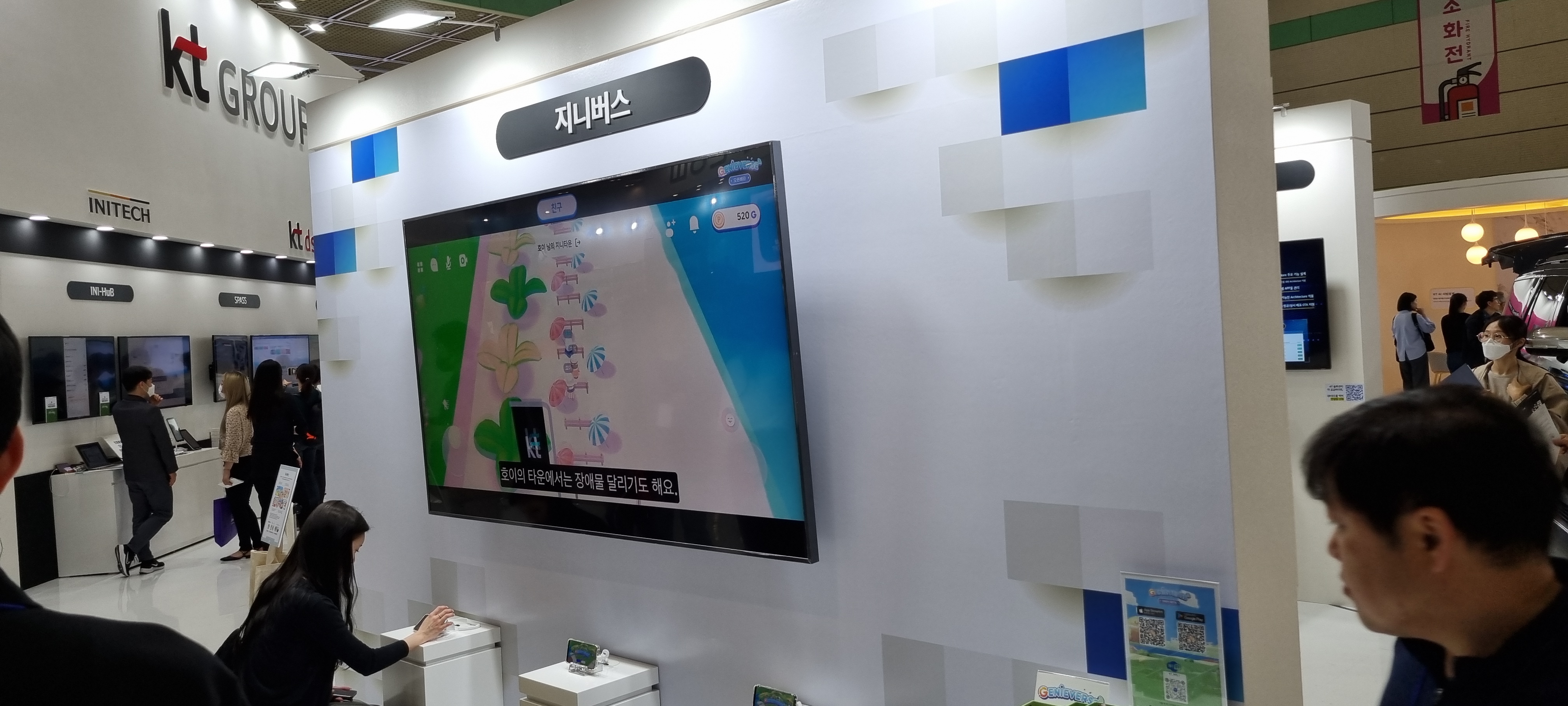 KT 부스 전면에 '지니버스'가 있었습니다. 오가는 사람들은 '지니버스'가 무엇인지 잘 모르는 것 같았습니다.