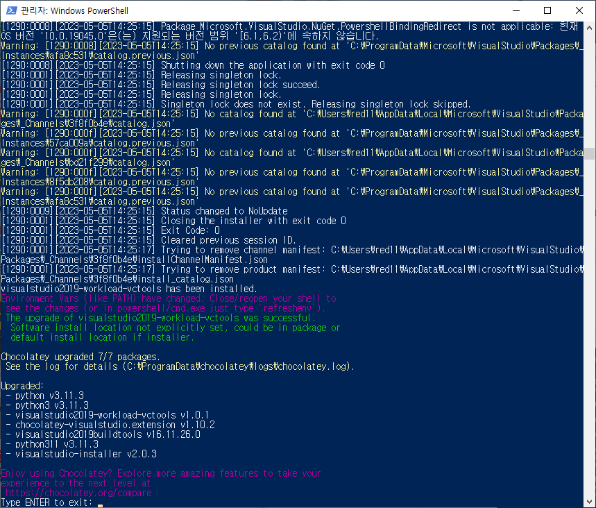 웹 개발 환경이 아닌 장비라서 그런지 이것 저것 설치 할 것이 많은 것 같고 그래서 제법 오래 돌아갔어요.