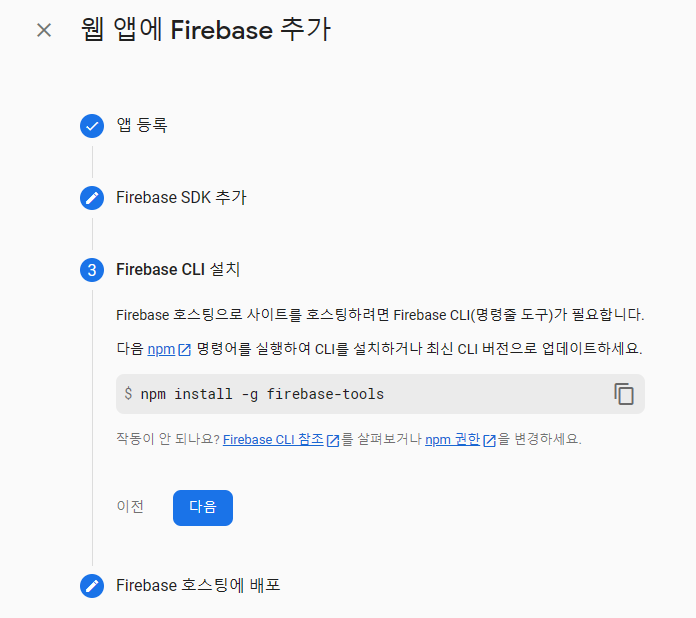 다음으로 Firebase CLI(Commnad Line Interface)를 설치합니다.