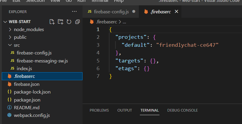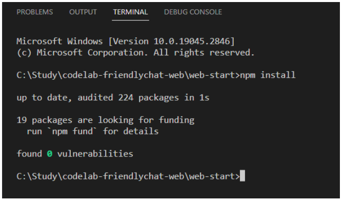 새로 열린 터미널에서 , firebase SDK 다운로드/설치는 이미 되어 있기 때문인지 금방 되었습니다.