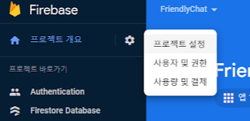 콘솔로 이동 후 프로젝트 설정으로 이동하여,