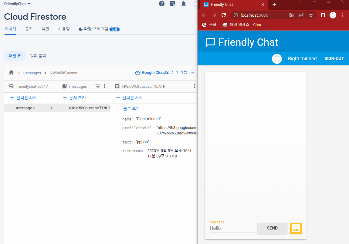 이제 실제 채팅 데이터를 Firebase에 기록하고 읽는 과정을 진행해 보겠습니다.