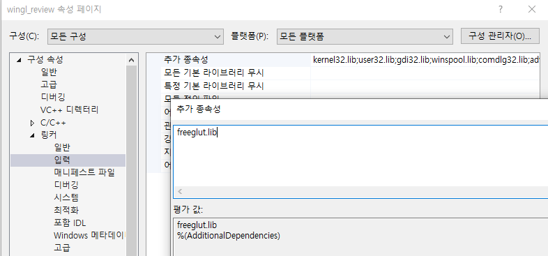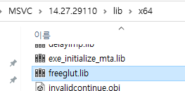 이제 freeglut.lib를 사용 할 라이브러리로 프로젝트에 등록합니다.