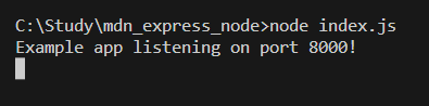 로컬 호스트이니 127.0.0.1로 접근해서 확인이 가능하고, 포트는 app.listen의 인자로 설정 된 8000번 입니다.