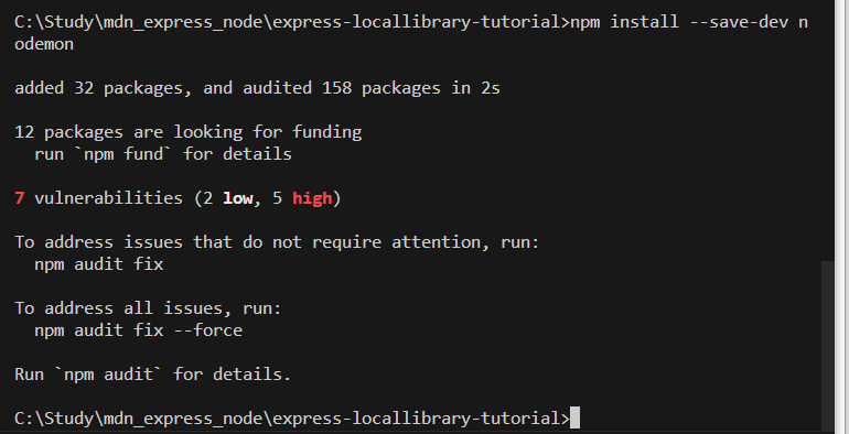 C:\Study\mdn_express_node\express-locallibrary-tutorial>npm install