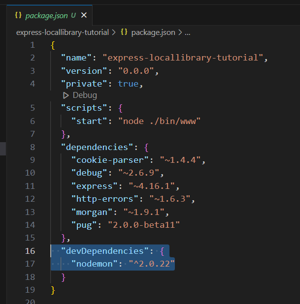 SET DEBUG=express-locallibrary-tutorial:* & npm start