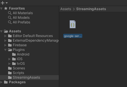 StreamingAssets이라는 폴더를 만들고 그 하위로 설정 파일을 옮겨둡니다. (Tutorial의 내용은 Unity 버젼에 따라 다르게 적용해야 하나 봅니다.)
