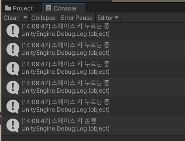 실행하고, 스페이스 키 누르면 특별한 오류 로그는 없네요.