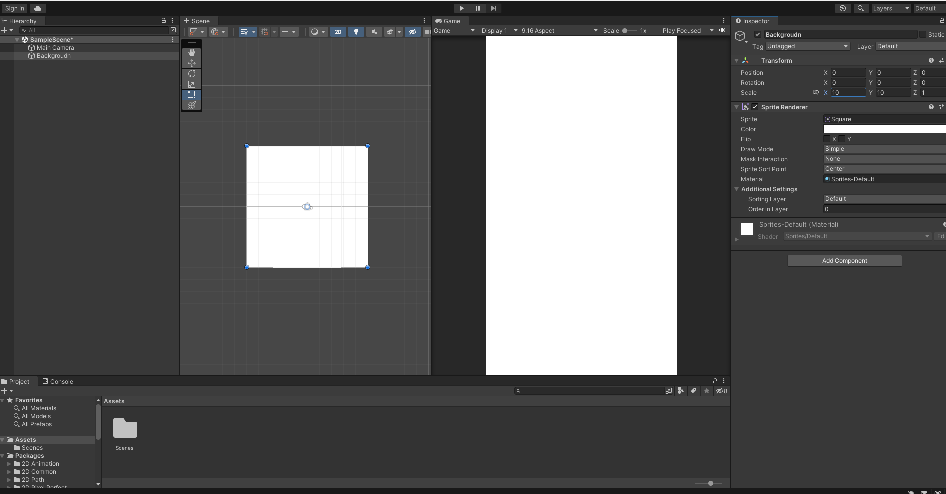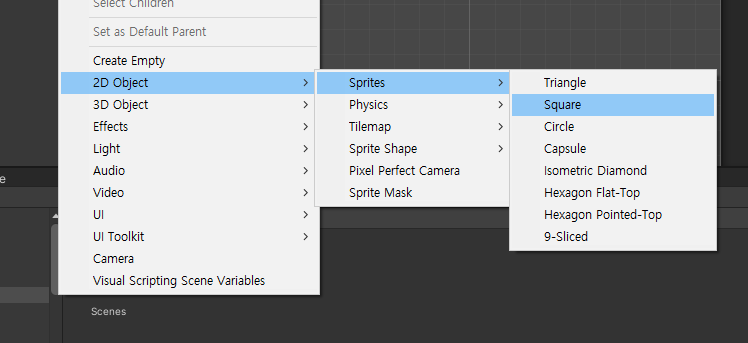 배경 이미지가 될 사각형 스프라이트를 추가 합니다.