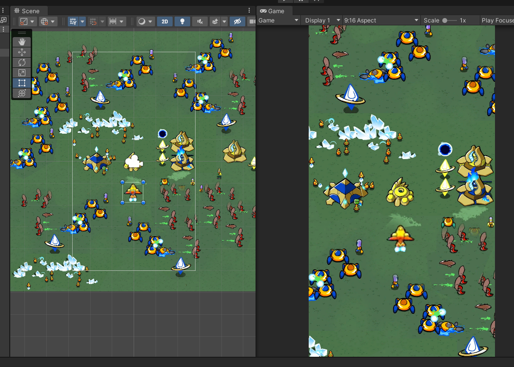 게임 화면은 세로로 길게 9:16으로 해두고, 전체 화면을 덮는 정사각형으로 크기를 조정 해 둡니다.
