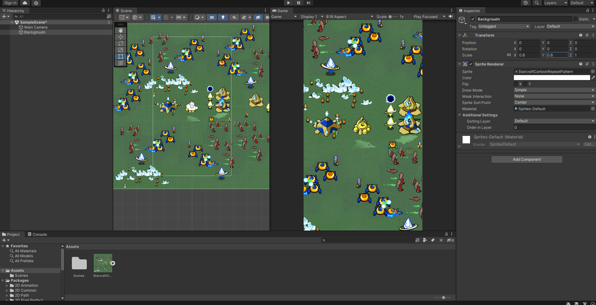 이미지를 프로젝트 에셋에 추가하고 이것을 배경 스프라이트의 이미지에 할당 합니다.