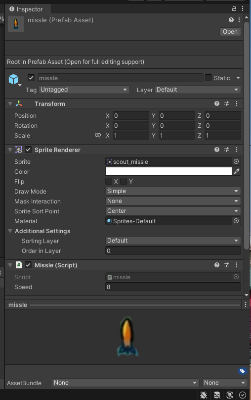 일단, 그냥 날아가는 미사일을 먼저 만들어 보도록 하고.