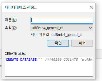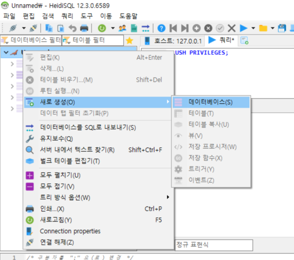 로그인 한 세션에서 context menu를 통해서 DB를 생성 할 수 있습니다.