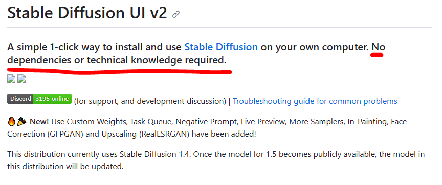 Easy diffusion인데 왜 엉뚱한 이름으로 검색하나 했더니, 만드신 분 ID가 cmdr2라네요. 아래 내용을 보니, 프로그래밍과 관련 된 여러분야에서도 예전의 OpenGL이 그러했듯, 기술을 더 깊게 알아야 되는 그룹과 기술을 더 모르고 쓰기만 잘 하면 되는 그룹으로 나눠지는 것 같네요. 그 중간의 어중간한 회색 지역에 있던 사람들은 이쪽이든 저쪽이든 한 쪽으로 붙거나, 혹은 그 동안의 짠밥으로 옮겨갈 수 있는 다른 회색지대로 넘어가거나... 땅따먹기 하면서 땅이 점점 줄어드는 것 같기도 하고...