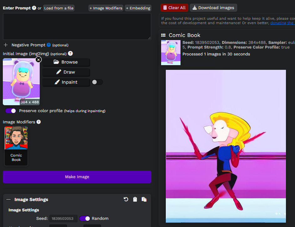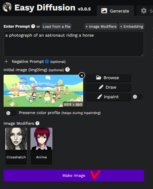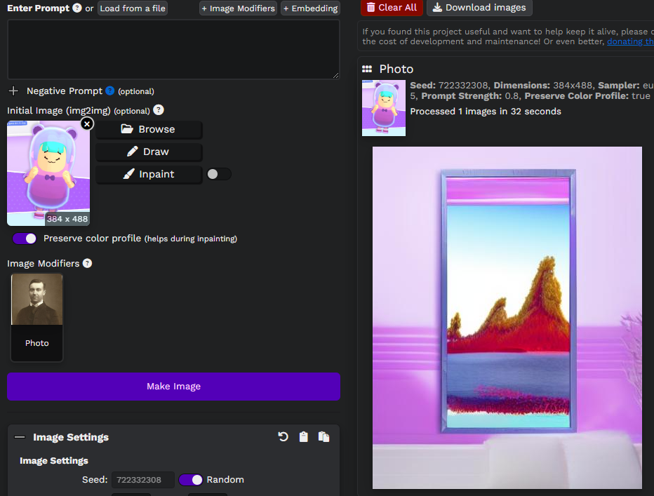 Stable diffusion도, Easy diffusion도 처음 사용하는 것이니, 자세한 사용법은 차차 가이드를 보고 익히도록 하고, 지금은 막 써보면서 어떤게 있는지 맛을 좀 보도록 하겠습니다. 기초 이미지를 불러서 이미지를 조정 해 보도록 하겠습니다.