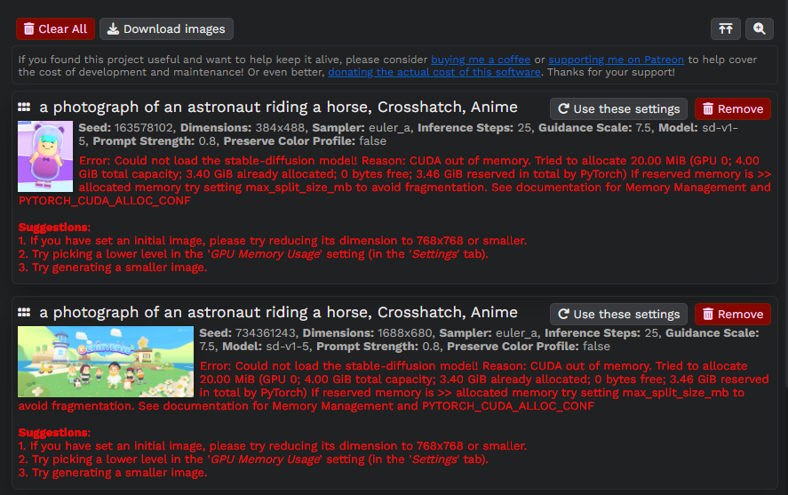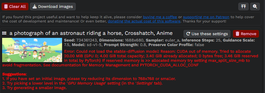 메모리가 부족하다는 에러가 뜹니다. 이미지 해상도가 너무 큰가 봅니다. 크기가 작은 젤리 이미지를 먼저 시도해봐야겠습니다.
