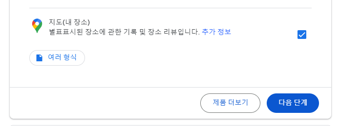 다음 단계를 누르면 받을 방법을 지정하게 되는데, 저장 할 경로를 설정하거나 메일로 받는 방법을 선택 할 수 있습니다. 데이터가 많으면 메일로 받는 것이 기다리지 않아도 되서 좋을 것 같네요. 이 예의 경우는 데이터 양이 많지 않으므로 그냥 구글 드라이브에 저장하도록 하겠습니다. 주기적 백업을 할 목적이 아니므로 한번만 하고...