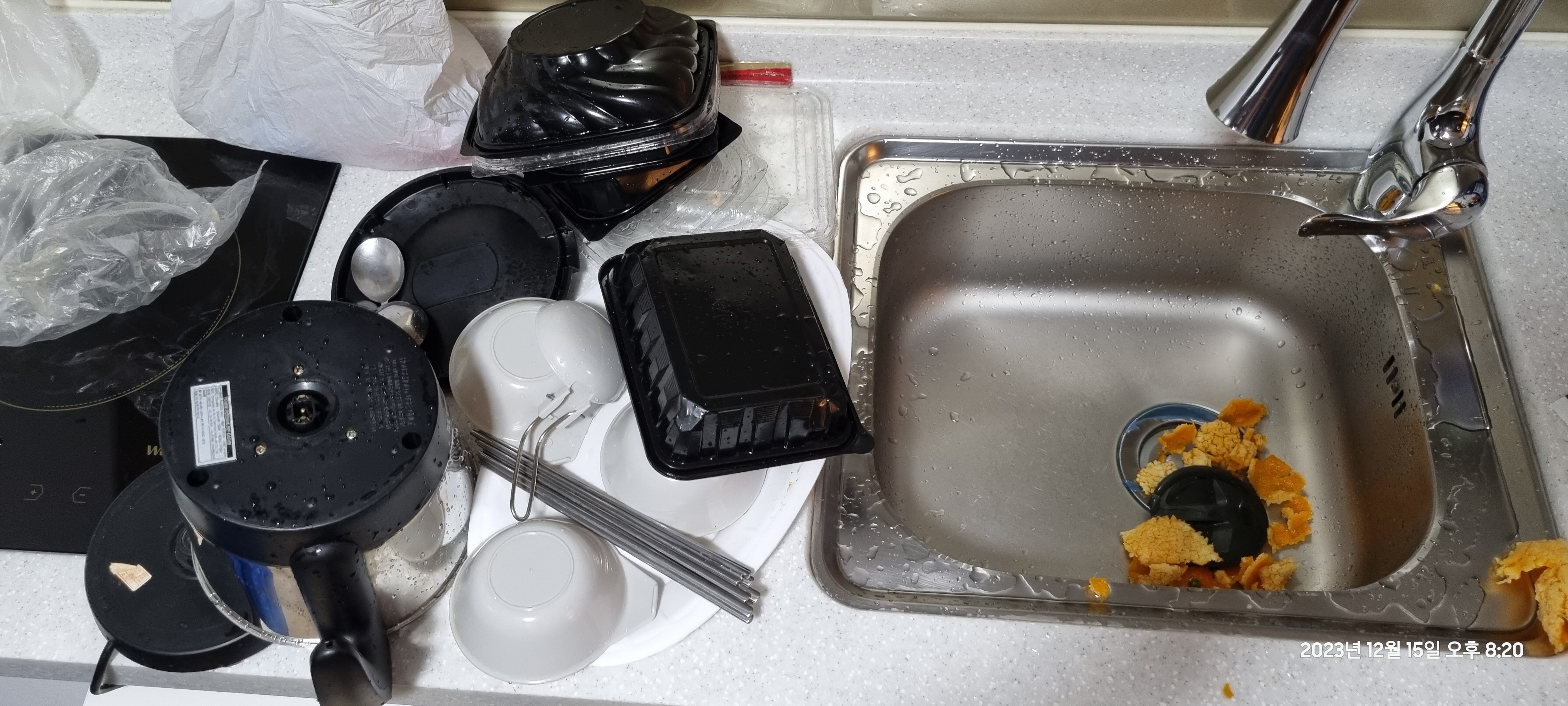 호텔에는 따로 설겆이를 할 만한 세제가 없었는데, 겨울이라 간식으로 챙겨간 귤이 좀 있어, 귤 껍질로 설겆이를 하니 꽤 괜찮았습니다.