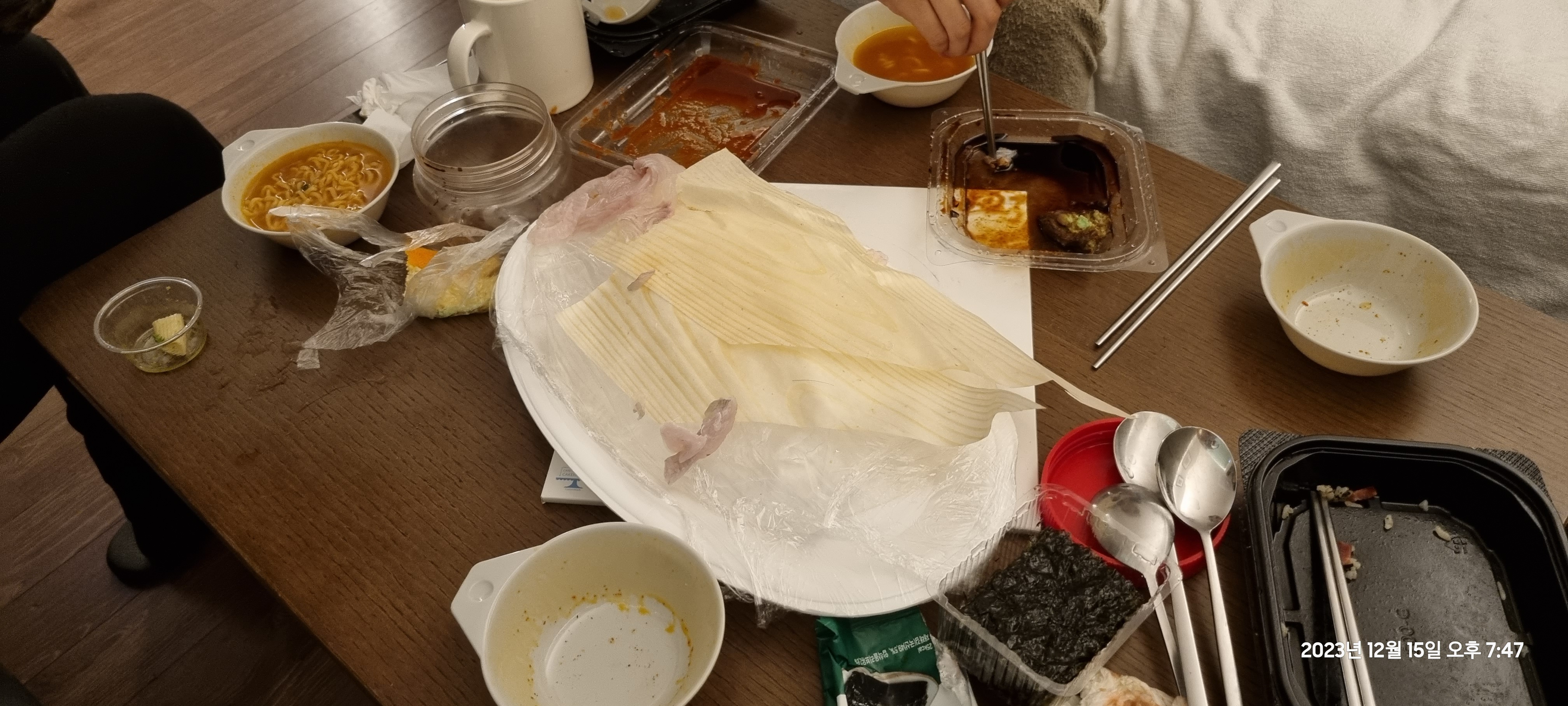 회 한 접시에 라면 끓여서 먹으니, 아주 그냥 모두가 행복한 저녁이었습니다.