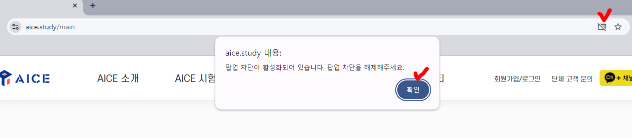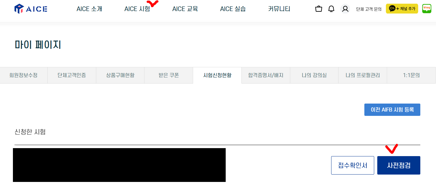 - 매뉴의 'AICE 시험 - 시험응시 - 사전점검'