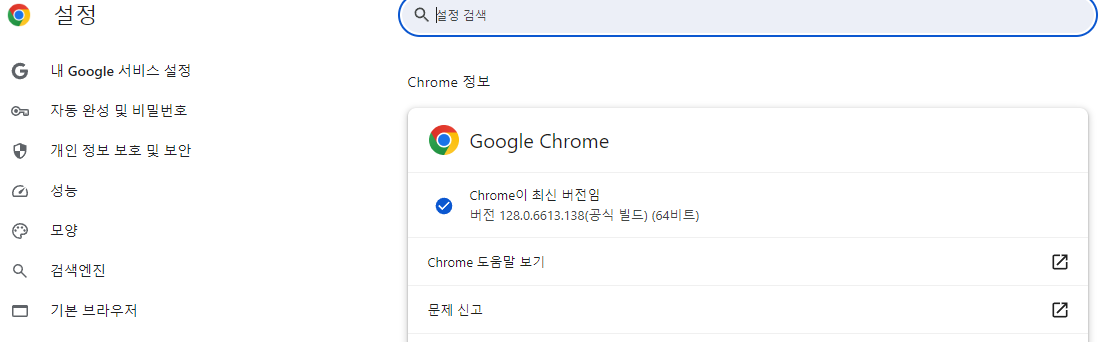 - 크롬이라고 하니 크롬을 최신 버젼으로 업데이트 해 둡니다.