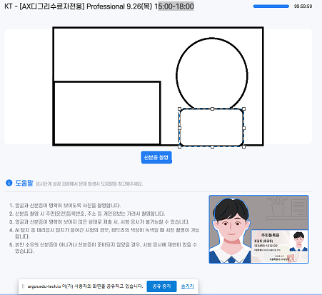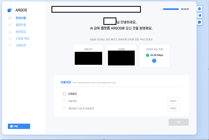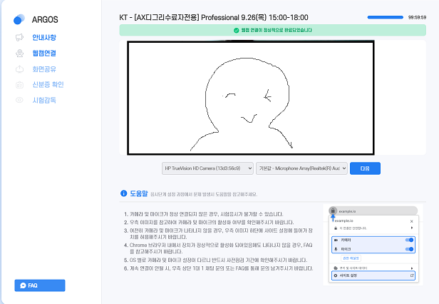 그 후 시험 안내가 보이며 사전 점검이 완료 됩니다.
