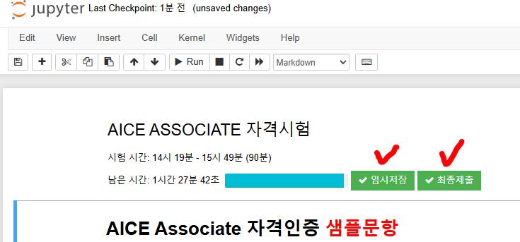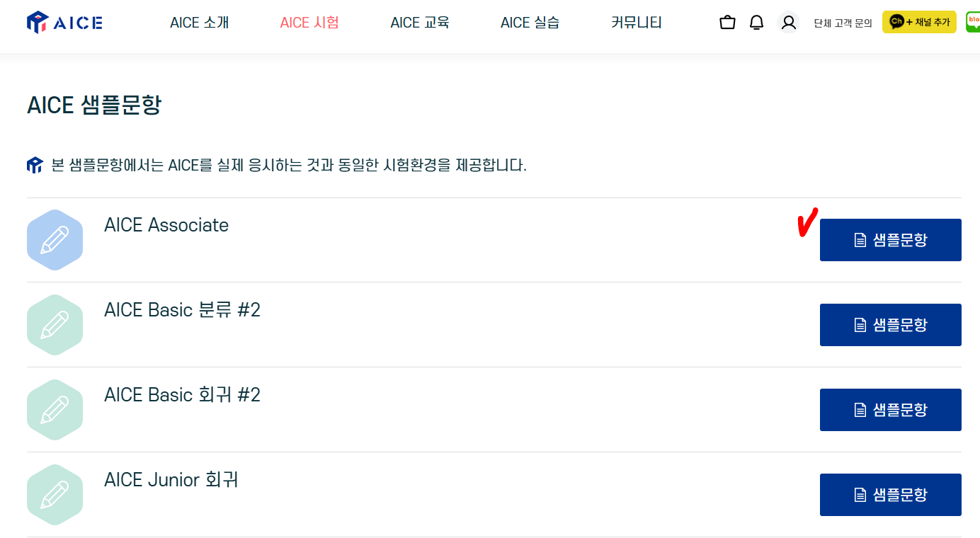 시험 환경 검토를 위해 AICE 시험 - 샘플 문항을 눌러 봅니다.