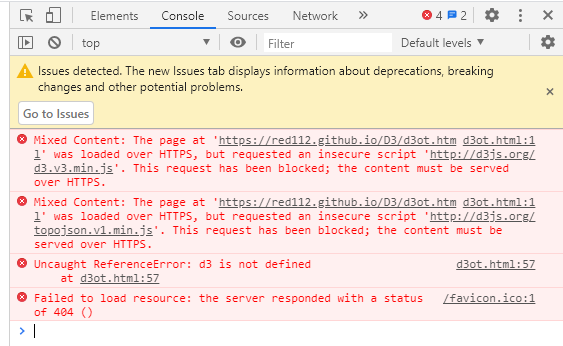 천만다행, 대충 알아먹을 수 있는 오류네요. github에서 돌리려면 보안 때문에 https로 해야 하나 봅니다.