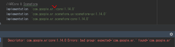 이제 사용 할 라이브러리에 ARCore를 추가합니다. App의 build.gradle에 다음과 같이 추가 합니다. OpenGL을 처음 배울 때도 Visual studio에 library 연결하는 방법이 가장 생소하고 어려웠었는데, ARCore 내용보다 이런 개발 환경의 차이가, 제때 android로 넘어가지 못한 사람에게는 큰 진입 장벽이 되는 것 같아요.