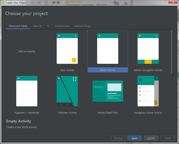 android sdk 최소 버전 확인하고, 일반적으로 앱 만들 때 사용하는 Next, Next,... 처럼 샤샤삭~~