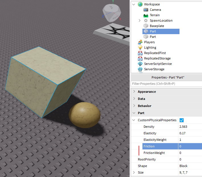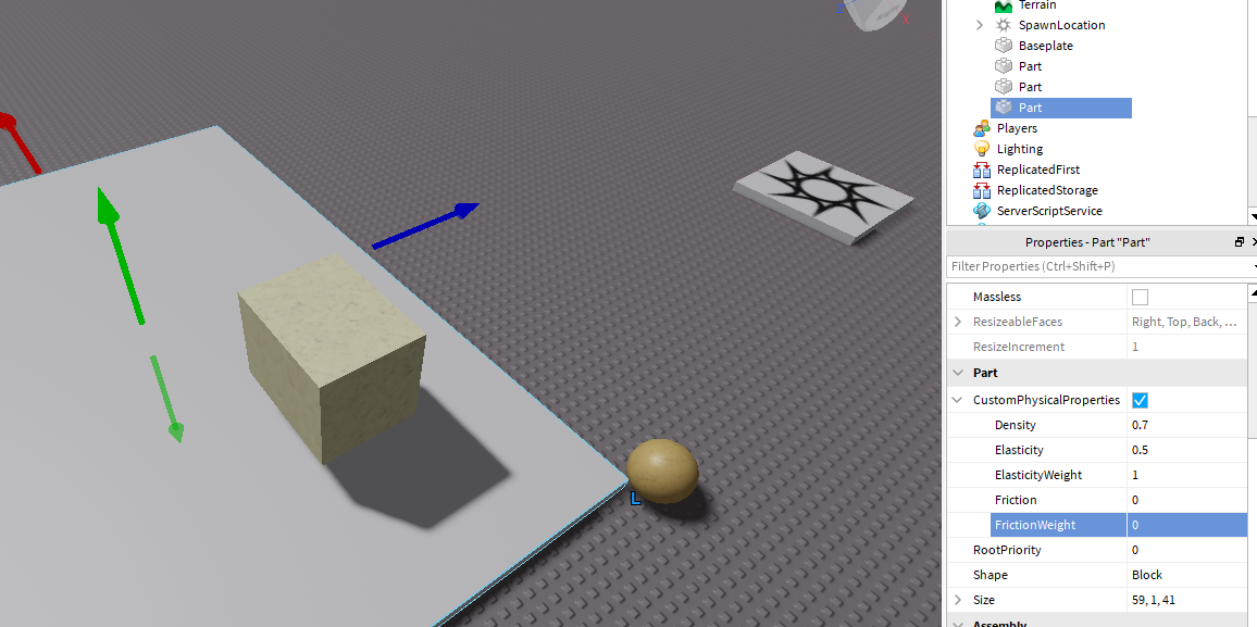 바닥에 다른 파트를 하나 넣어서 그 물체에 마찰력을 0으로 해 봤어요.