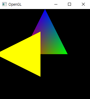 이 상태에서, 노란 삼각형의 랜더링 코드 앞에 회전 코드를 넣으면 당연한 이야기지만 노란색 삼각형만 회전할 것입니다.