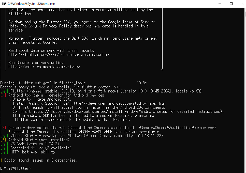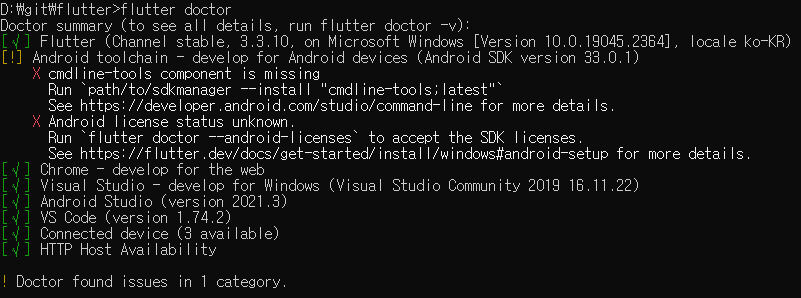 설정을 체크 해 주는 의사, Flutter doctor!