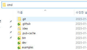 Path가 잘 등록되어 있는 상태라면 윈도우 콘솔창 어디서든 실행해도 될텐데, 혹시 Path가 아직 제대로 등록되어 있지 않다면, flutter를 실행하려면 콘솔창에서 저 폴더를 찾아가서 실행해야 합니다. 콘솔창에서 경로를 변경하는 것이 좀 번거롭다면, 탐색기에서 해당 폴더로 옮긴 후, 경로창에 cmd라고 입력하면 그 경로에서 콘솔창이 열립니다.