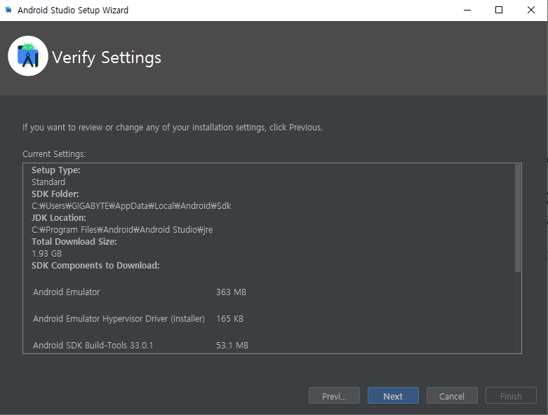 Android SDK의 위치는 아래 방법으로 확인 할 수 있습니다.