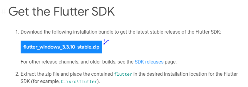 아래 그림처럼, flutter 폴더 아래의 bin 폴더까지의 경로를 적어줘야 합니다.