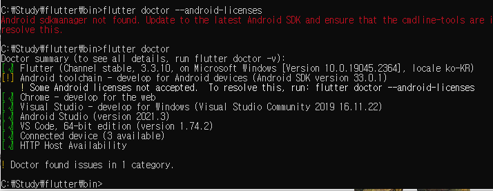 설정을 체크 해 주는 의사, Flutter doctor!