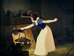 매우 부드럽고 자연스러운 표현으로 만들어진 디즈니의 만화 영화에서도 이러한 표현을 쓰고 있는데요, 아래 백설 공주의 치마또한 그렇습니다. 그런데, 치마는 현실적으로 표현을 해도 어두운 곳에서 조명 가까이 있으면 그림자 부분의 경계가 또렷해져서 Toon shaing 처럼 보일 수 도 있겠네요. 일단, 아래 그림만 보면, 배경의 음영은 매우 정밀하게 되어 있으나, Animation의 대상이 되는 인물은 매 프레임을 이렇게 배경처럼 정밀하게 그릴 수가 없기 때문에 Toon shading을 한 것 같습니다. .