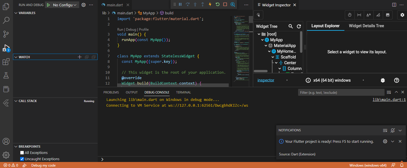 이것저것 눌러보니 프로그램 실행 시 디버깅 환경도 멋지게(? 뭔지 모르지만 좀 복잡한게 막 돌아가는 듯한...) 구성되어 있는 것 같아요.
