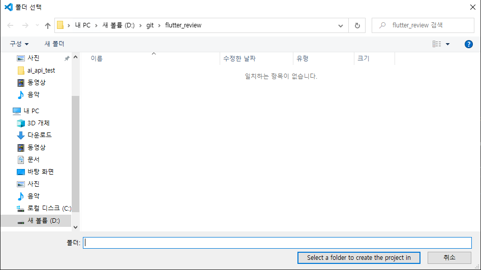 그리고 나면, 작업 폴더를 지정해야 합니다. 빈 폴더를 하나 만들어 지정 해 보겠습니다.