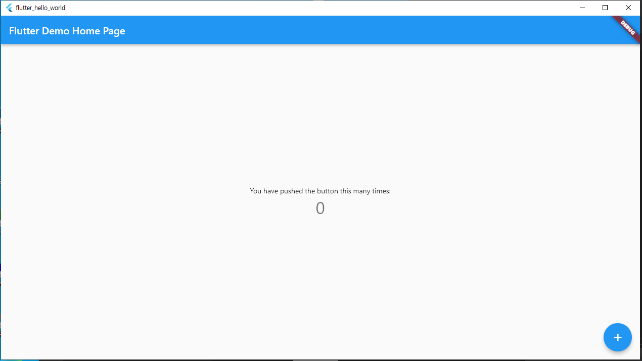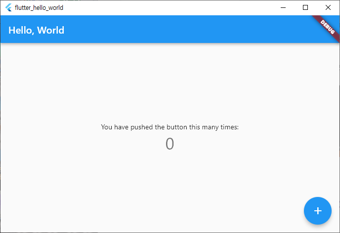우측 하단의 버튼을 누르면 중앙의 숫자가 증가하는 간단한 프로그램입니다.