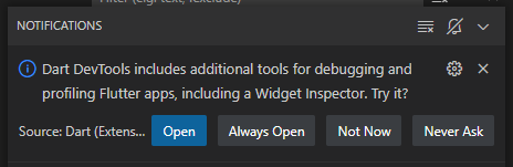 flutter를 시작한다니까 VS Code에서 이것 저것 추천도 많이 해주네요. 뭔가 확인이나 해보자 싶어서 Open 눌러보니...