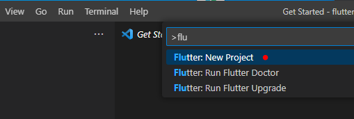 매뉴에서 View > Command Palette 를 누르거나 단축키 (Control + Shift + p)를 눌러 명령창을 띄우고, 거기서 Flutter : New Project를 선택합니다.