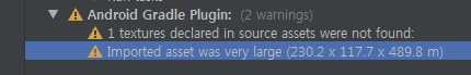 텍스쳐 하나가 없다는 것은 아마도, andy fbx가 빌드 실패한 이유이거나, 어딘가 텍스쳐 이름이 대문자로 되어 있는 곳이 한 곳 더 있어서 인 것 같고, 하나가 매우 크다는 것은, 자동차에 해당하는 것 같습니다. 실제로 띄워보면 자동차 실제 크기로 모델링 되어 있어서 화면을 가득 차게 만들어졌습니다.