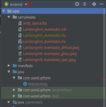그런데, 'android'로 되어 있는 부분을 'Project'로 바꾸면 보입니다.