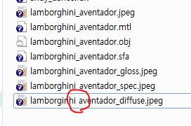 오류 발생 가능성을 줄이기 위해 obj와 mtl에서 긴 이름들을 다 lambo로 수정했습니다.