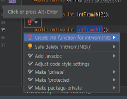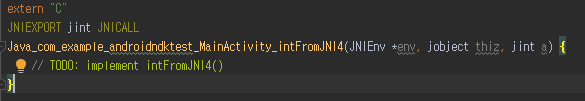 달라진 점은 함수 선언에서 패키지 명에 해당하는 부분에 제가 임의로 글자를 적어봤고, int형을 리턴하도록 했습니다.