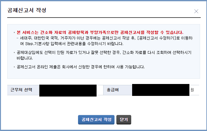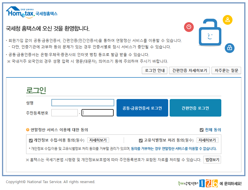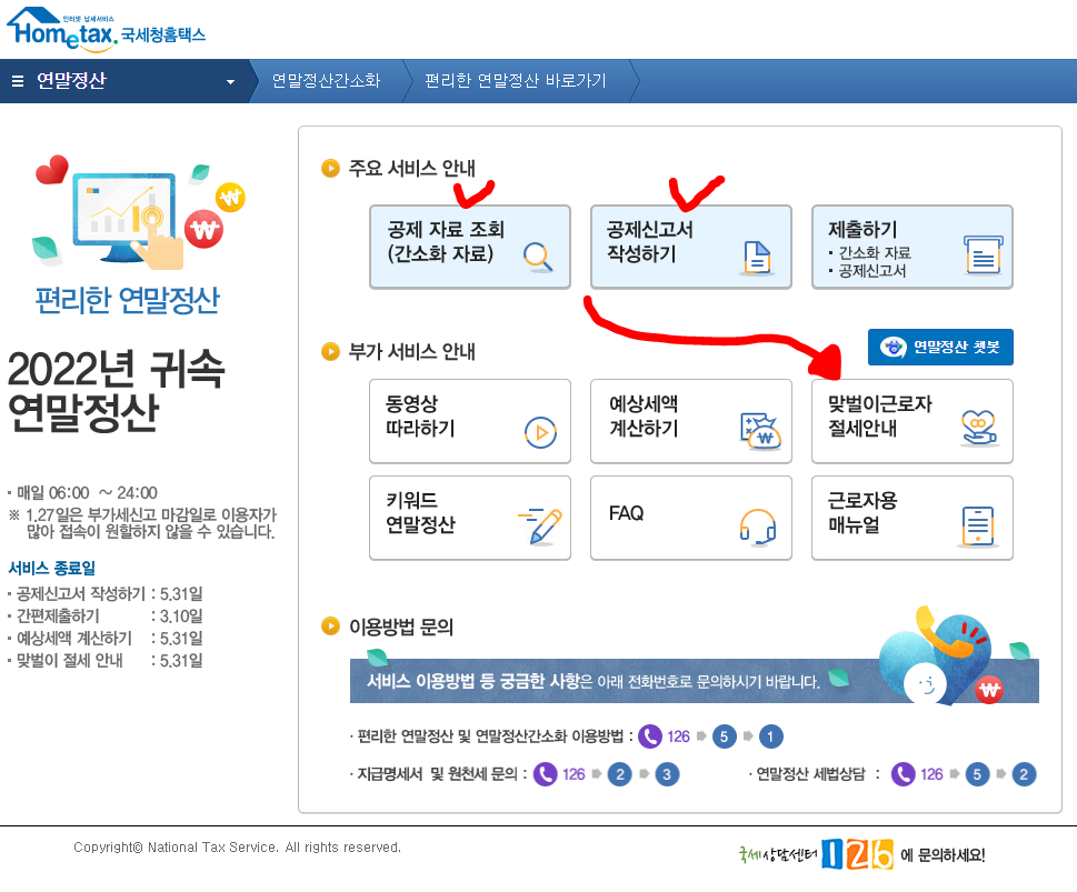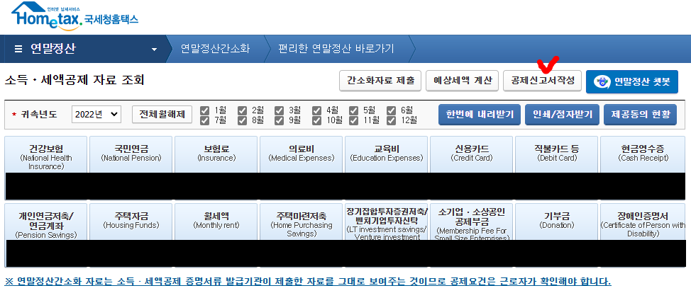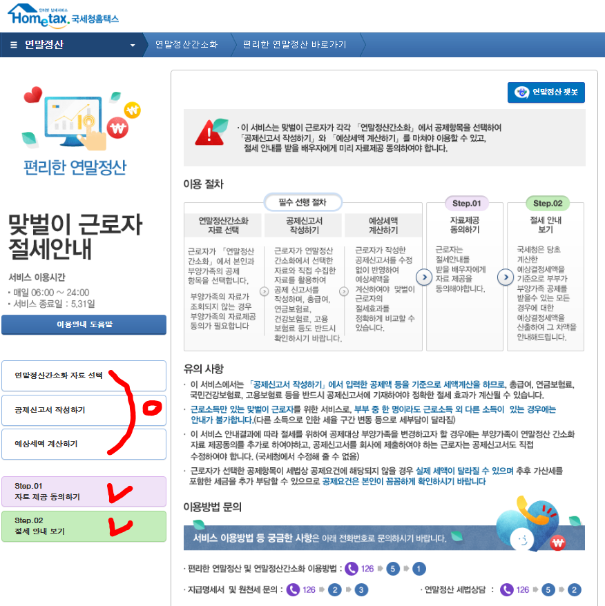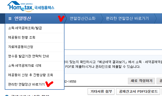 요즘이 연말정산 시즌이라 아래와 같이 평소와 다른 모습이 나옵니다.